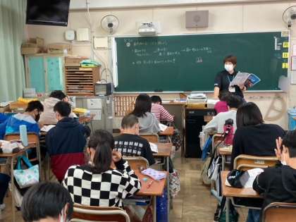 雨天のためスポーツ交歓会が中止となり、通常授業をしています。6年生が保健でむし歯の起り方、歯周病の起り方を学習しました。