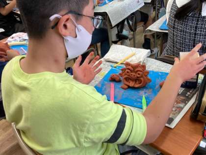 個性あふれるシーサーができあがりました。11日(金)の5年学習参観の時に、ぜひご覧ください。