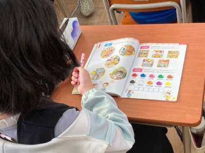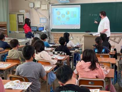 4年生の外国語活動は、C-NETの先生と学年の先生が行っています。4年生は、体育と音楽、外国語活動については教科担任制をしています。