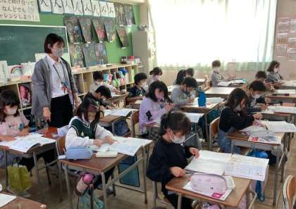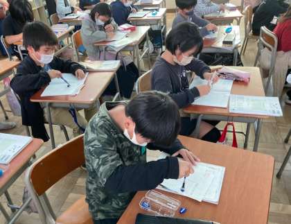 3年生の学習参観は、算数「円と球」の単元で、コンパスを使って円をかく学習をしました。円の半径の長さを考え、コンパスで円をかきました。コンパスの扱いに慣れていないので、少し苦労しましたが、上手にかいていました。