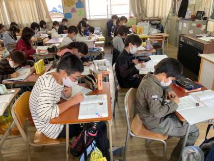 5年生の学習参観は、国語「熟語で作文」です。国語辞典を活用して、二字熟語、三字熟語、四字熟語を調べました。辞典で調べることは大切です。身につけてほしい力です。