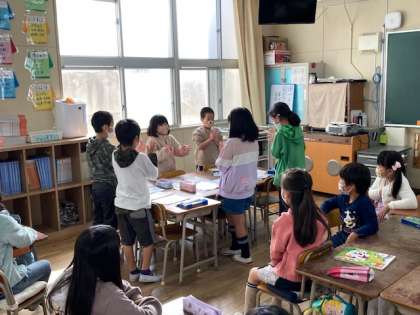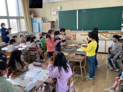2年生が音楽の学習で、繰り返しを使ってリズムを作りました。各班で作ったリズム打ちを発表しました。