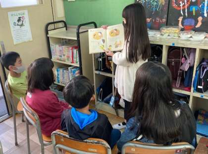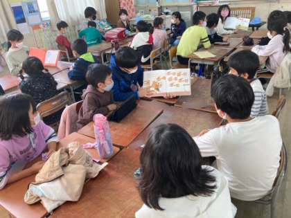 今日の児童集会は、スマイル班(たてわり班)の教室に集まり、6年生から絵本の読み聞かせがありました。6年生が一生懸命に読み聞かせをしている姿はすてきです。