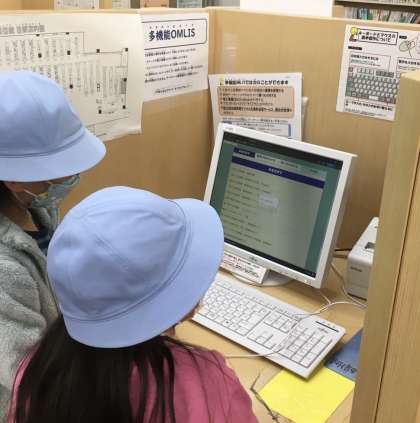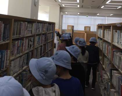 2年生が阿倍野図書館へ見学に行きました。館長さんから図書館の利用の仕方を教えてもらいました。その後、自分の読みたい本を検索して探す体験をしました。最後は、読みたい本を探して本を読みました。