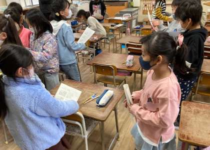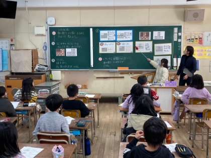 2年生が算数「九九を作ろう」を学習しました。かいけつゾロリから手紙が送られてきたという設定で、箱の中のチョコレートの数の求め方を、アレイで図をもとにして考えました。ペアやグループで交流し合いながら、自分の考えを発表したり新しい求め方を説明したりしました。