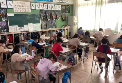 大阪市小学校学力経年調査の国語と社会科を実施しました。3年生ははじめて学力経年調査を受けました。問題が冊子になっていて、たくさんの問題があるのでとても集中してがんばっていました。4年生は昨年度受けていますので、少し慣れていますので落ち着いて問題を解いていました。