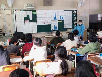 6年生が算数「データーの調べ方」を学習しています。今日は、これまでに学んだドットプロット、度数分布表、ヒストグラム
