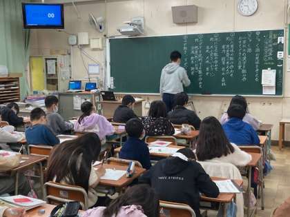 4年1組では、国語「じゅく語の意味を考える」学習をしました。2組は「言葉集め」を学習しました。作った文を積極的に発表していました。国語辞典や漢和辞典を使い家庭学習で取り組んでほしいです。