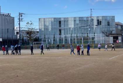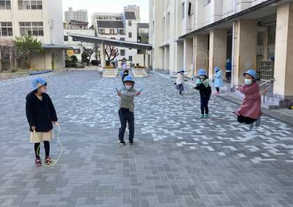 真冬のような寒さを感じますが、子どもたちは元気にドッジボールやなわとびをして遊んでいます。子どもは風の子ですね。
