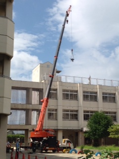 資材を屋上にあげたりの作業を行っています。