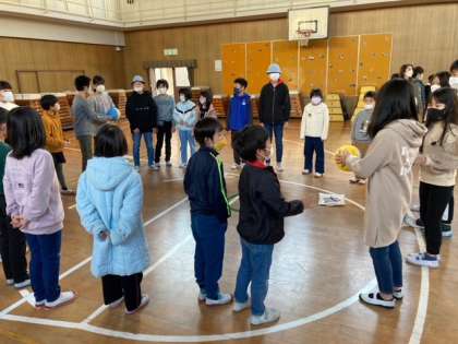 2学期最後の児童集会をしました。体育館と運動場に分かれてゲームをしました。スマイル班(たてわり班)のリーダーである6年生が下級生をしっかりとリードしてまとめてくれました。
