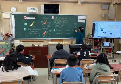 5年生が算数「三角形の高さについて」を学習しました。図形領域は子どもたちの苦手な単元です。クラスを2分割して取り