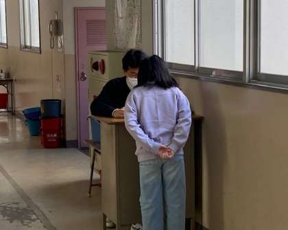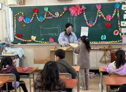 各学級では、2学期の通知表を渡しました。担任の先生から「2学期よくがんばった」と、ほめてもらい笑顔で通知表を受け取っていました。