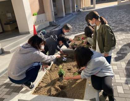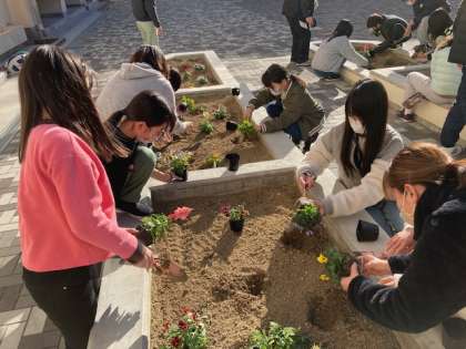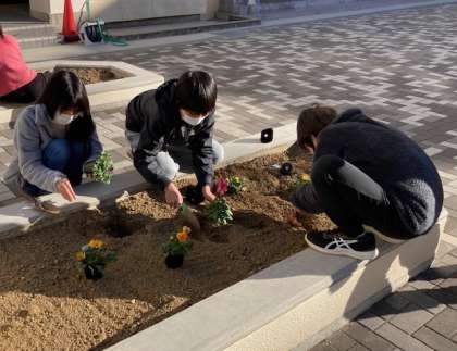 環境委員会の児童が校内栽培活動として、花の広場の花壇に花を植えました。6月ごろまで咲き続ける花です。