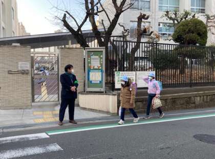 今日は阿倍野警察から防犯の方が来て、子どもたちの登校を見守っていただきました。インフルエンザが流行しています。インフルエンザは「発症後5日間かつ解熱した後2日を経過するまで」は、出席停止期間となります。インフルエンザにかかった時は、必ず学校へ連絡をお願いします。
