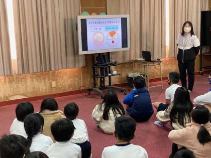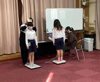 4年生が発育測定をしました。養護教諭から成長曲線や成長ホルモンの働きについてお話があり、体が成長を始める時期は人によって違いがあることを学びました。その後、身長と体重をはかりました。