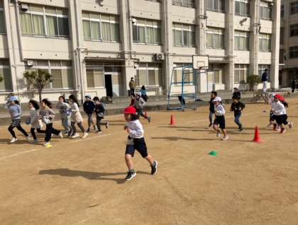 今日は1年生と4年生が、耐寒かけ足をしました。自分のペースで長く走ることができるようになっています。寒さに負けないでがんばっています。