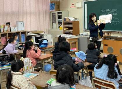 図書ボランティアさんによる絵本の読み聞かせがありました。図書ボランティアさんが学年に合った絵本を選んでいるので、子どもたちはとても興味を持って聴いていました。