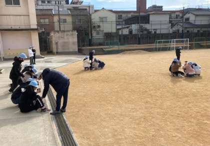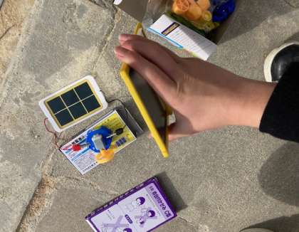 6年生は、理科「電気の利用」を学習しています。運動場では光電池で発電するか確かめました。鏡を使って光電池に光を強く当てたらどうなるかも調べました。