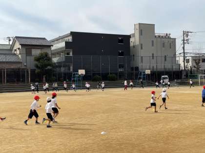 寒さに負けず、今日も元気に耐寒かけ足に取り組んでいます。今日は1年生と4年生です。記録をのばすために頑張って走りました。