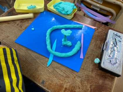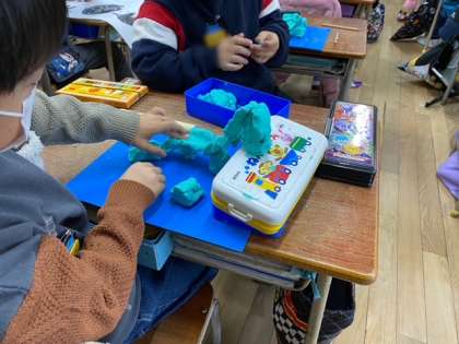 1年生の図画工作科では、粘土で自分の好きなものを作っていました。