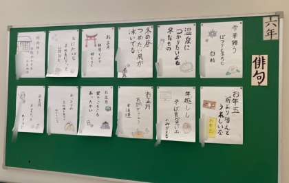 学習参観の時には、教室の掲示だけでなく学年の掲示板もご覧ください。
