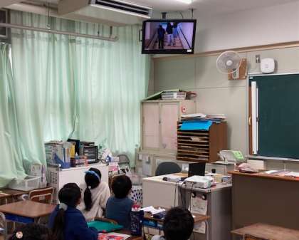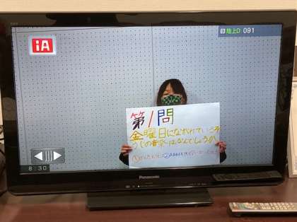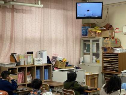 今日の児童集会は、委員会の発表です。放送委員会と環境委員会が活動の報告をしました。活動の様子を撮影した映像を流したり、クイズ形式にして紹介したりしました。