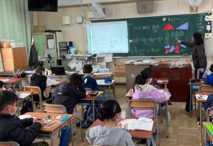 3年生が、算数「角の大きさについて調べよう」を学習しました。角の大きさは辺の長さに関係なく、辺の開きぐあいで決まることを学びました。
