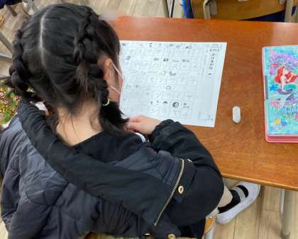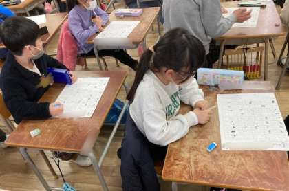 1年生がカタカナの学習プリントを使って復習をしました。カタカナを全部書けるかなあと、不安そうに書いていました。わからなかったカタカナは覚え直しましょう。