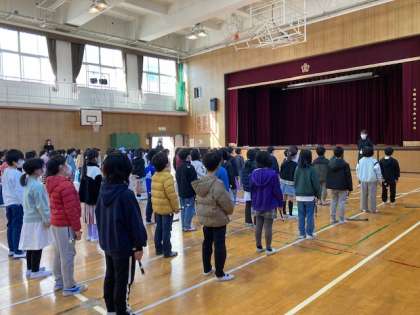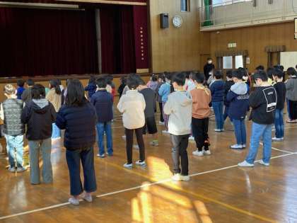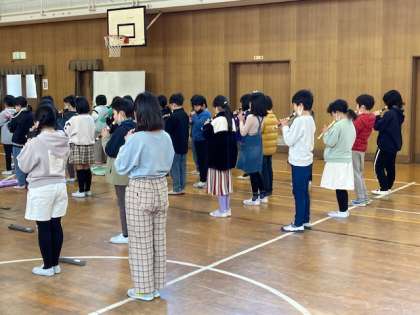 3年生が体育館で卒業祝う会の練習をしました。リコーダー演奏と合唱をしました。マスクを着用して歌いましたが、しっかりと声が出ていました。6年生の心に響く歌声です。