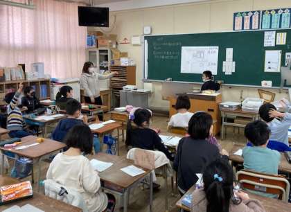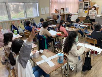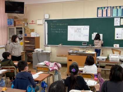 2年生が算数「はこの形の組み立て方を考えよう」を学習しました。切り取った面をつないで箱の形にしました。どんなふうに組み立てれば箱の形になるか、色々と試してみました。