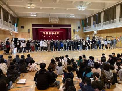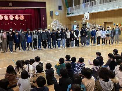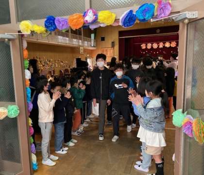 6年生が合唱を披露し、在校生へのメッセージを伝えました。最後は、1年生が作った花道を通り、にこやかに退場しました。