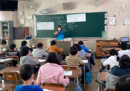 4年生が、「直方体と立方体」の学習をしました。直方体の辺と辺の交わり方や並び方、直方体の面と辺の交わり方や並び方を調べました。空間認識が難しいので、具体物を使って調べました。