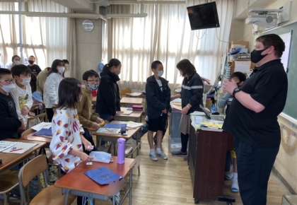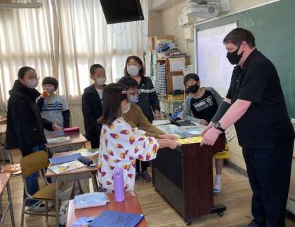 今日は、C-Netの先生と一緒に外国語の学習をする最終日です。この1年間のお礼をメッセージにして渡しました。C-Netの先生からお別れのスピーチをしてもらい、それを児童が通訳して伝えていました。とても和やかな雰囲気での学習でした。