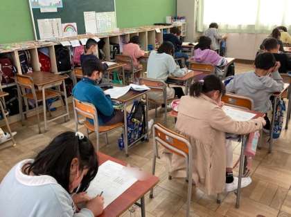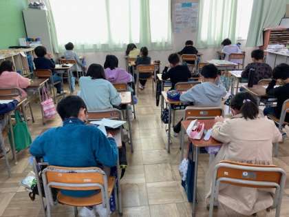 3年生が算数「ぼうグラフ」の単元テストをしました。3学期も残りわずかです。最後は、そろばんの学習で終わりです。
