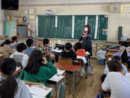 5年生が道徳「くずれ落ちたダンボール箱」を学習しました。「親切にすること」とは、どういうことかを考えました。「親切をしたことで自分がうれしくなる」と、子どものなかから意見が出ました。よく考え、発表していました。