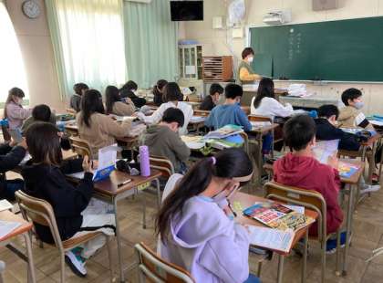 6年生は2クラスから3クラスになり、1学級当たりの人数が減り、より落ち着いた環境で学習ができます。新しい教科書が配布されると、すぐにページをめくり読んでいました。特に社会科の資料集に興味があるようでした。