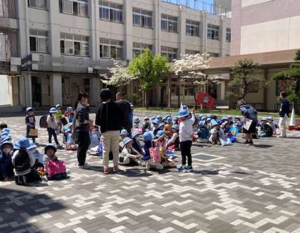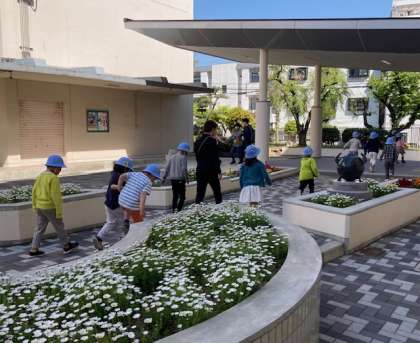 1年生が休み時間に担任の先生と一緒に花の広場を散策しました。下校は地区別に分かれて集団下校をしました。明日も元気に登校してね。