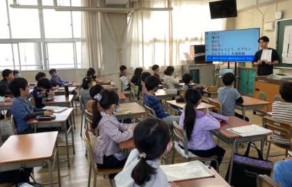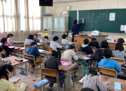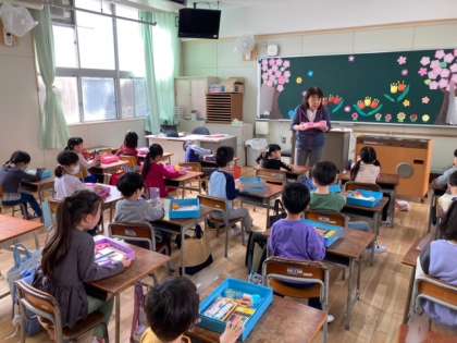 今日から給食が始まり、1年生以外は通常の時間割となります。朝の会では、今日一日の予定やめあて、明日の連絡などをしています。「元気に登校、笑顔で下校」を合言葉に、がんばります。