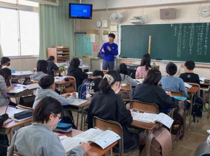 学期ごとの教科担任制を行なっている6年生。国語、算数、社会科を3クラスの担任がそれぞれ担当して授業を進めています。とても集中して学習をしています。