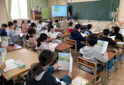 3年生が国語「物語の音読をしよう」を学習しました。「春の子ども」をみんなでリズムよく音読できました。
