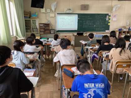 6年生が社会科「私たちのくらしと憲法」を学習しました。新しく難しい社会科用語がたくさん出てきます。しっかりと意味を理解してほしいです。また、算数「対称な図形」を学習しています。線対称、対称の軸と新しい内容を学びました。