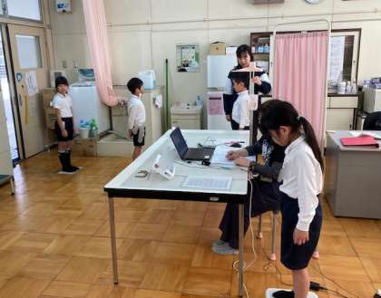 3年生が発育測定をしました。低学年から中学年になります。この1年での成長の伸びが楽しみです。