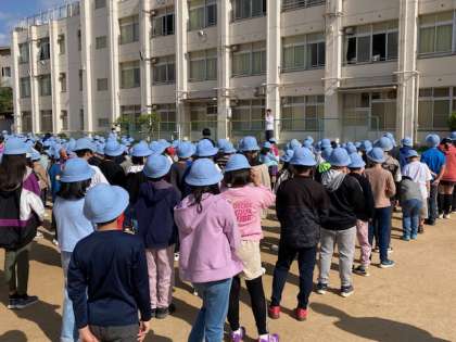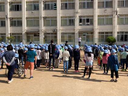 本年度第1回目の児童朝会を運動場で行いました。1年生は木曜日の入学を祝う会が終了してから参加します。