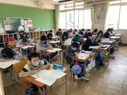 6年生が全国学力・国語、算数、児童質問紙をしました。集中して問題に取り組んでいました。