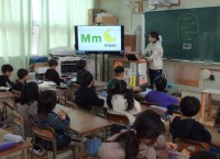火曜日と水曜日の朝は、10分間英語に触れ合う時間です。映像と音声で英語を聴き、声に出す活動をしています。