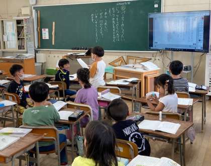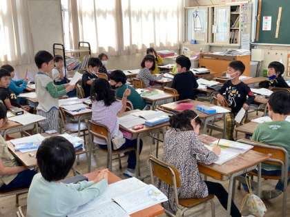 2年生が国語「風のゆうびんやさん」を学習しています。お話を音読するために、気持ちや様子を考えました。発表する友だちの方に体を向けて、しっかりと聴くことができました。