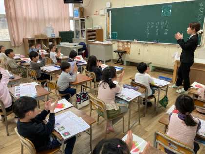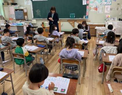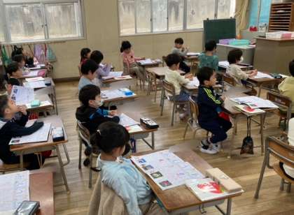 1年生は、ひらがな「お」の学習をしました。保護者の方がたくさん参観しているので、少し緊張しましたが元気に発表していました。