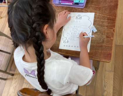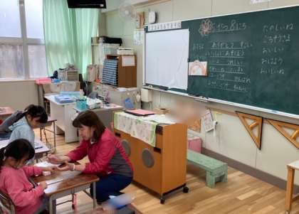 また、1年生がいじめについて考える授業をしました。心がぽかぽかする言葉を考え、カードに書きました。