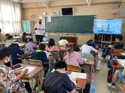 C-Netの先生と一緒に外国語(英語)の学習をしました。今日は、名刺を交換して自己紹介をしました。そのために、I like の後に好きな物の絵を書いて、名刺を作ました。名刺を渡して、My name is と名前を言い、I likeと続けました。楽しく英語を学ぶことができました。